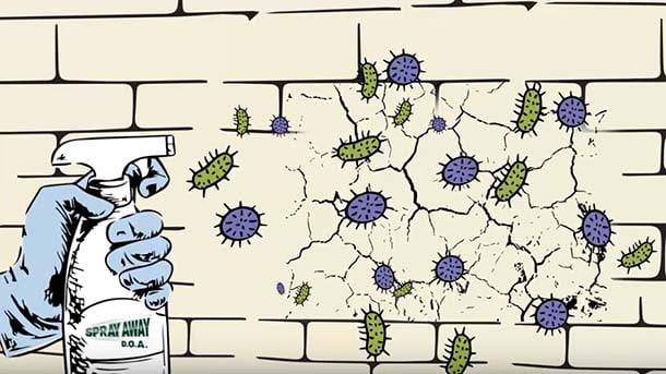 Spray Away D.O.A. has a Unique Dual Action Formula that kills on contact with alcohol and leaves behind an invisible antimicrobial crystal coating that continues to protect against germs and other harmful bacteria even after the spray dries! Easy on the hands and skin; Spray Away D.O.A. heals as it protects.